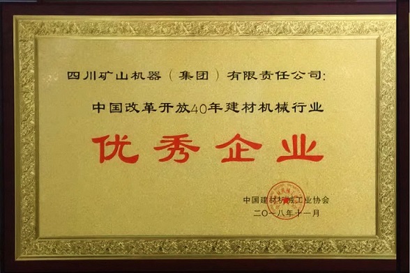川礦集團榮獲中國改革開放40年建材機械行業(yè)優(yōu)秀企業(yè)榮譽稱號